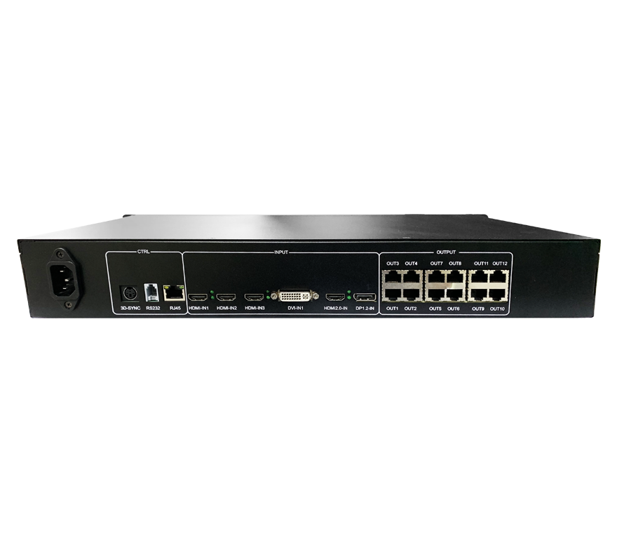最大帶載 780 萬像素,每個網(wǎng)口可做獨立帶載顯示,輸出單網(wǎng)口寬可達 8192 像素,最高可達 5760 像素