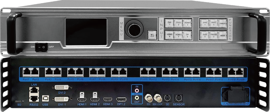 • 單機(jī) 20 路千兆網(wǎng)口輸出,最大帶載 1300 萬像素點(diǎn) LED 屏